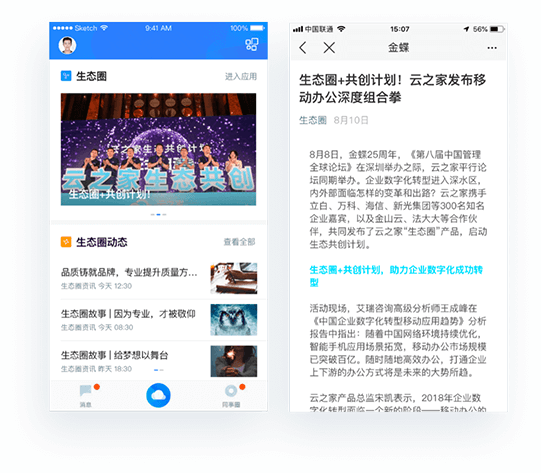 全程实现移动办公,开放API实现ERP业务快速连接。消息自动识别转日程安排,语音找同事、找应用。社交化过程沟通,互动讨论更高效。